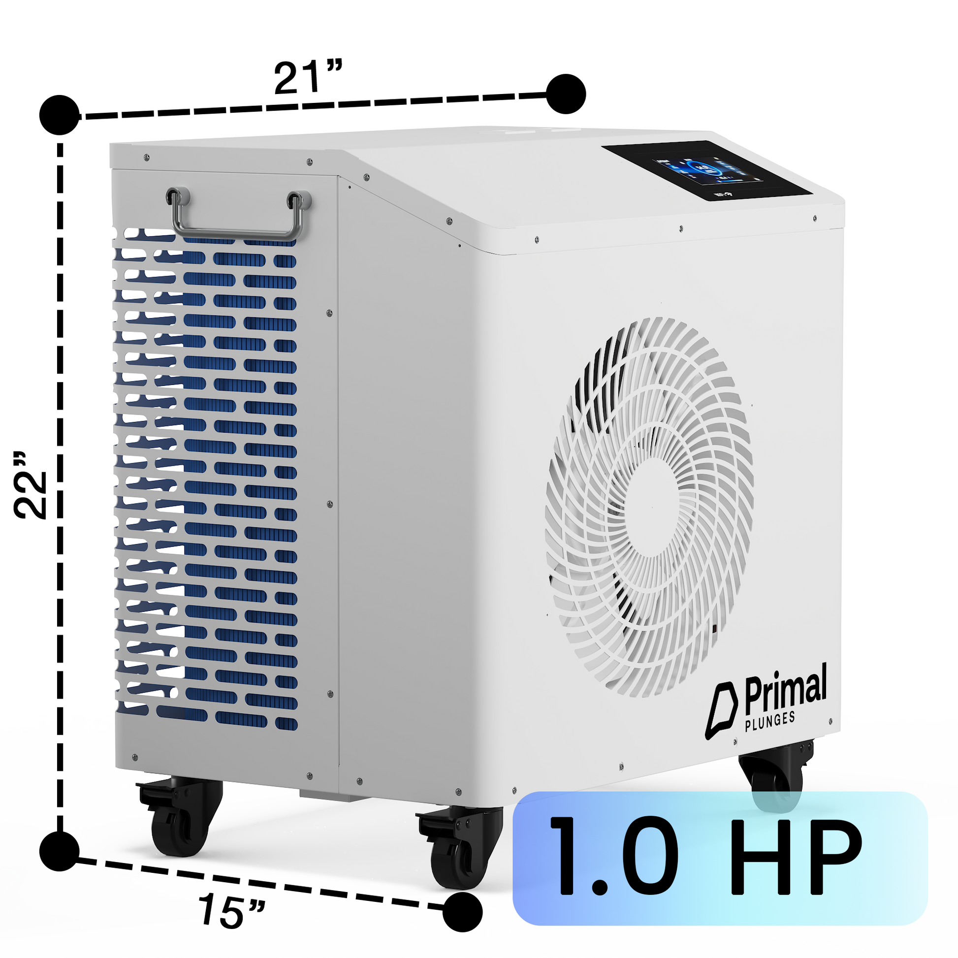 • Dimensions (chiller + hoses): 26" x 22" x 15" (WxHxL)